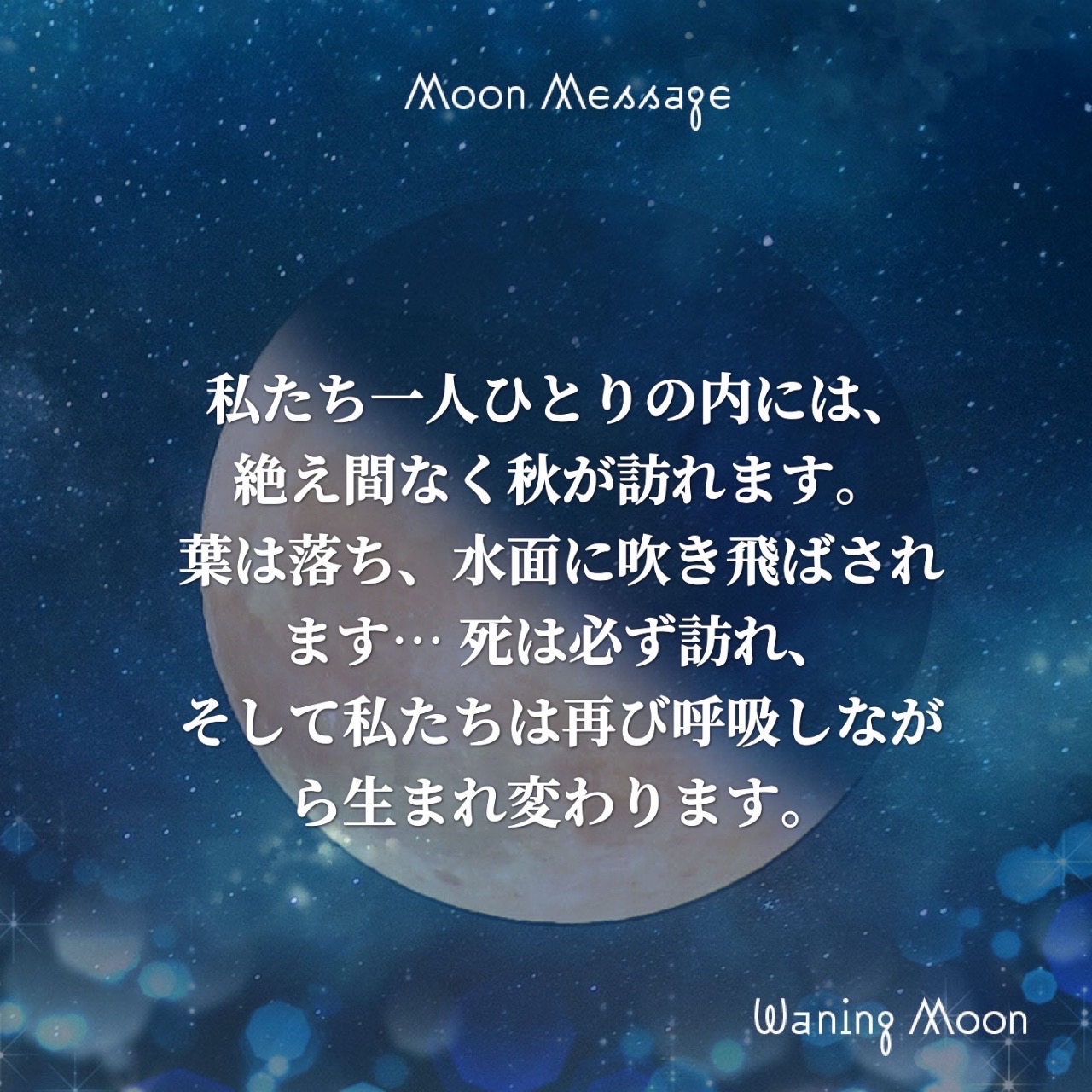 私たち一人ひとりの内には、絶え間なく秋が訪れます。葉は落ち、水面に吹き飛ばされます…