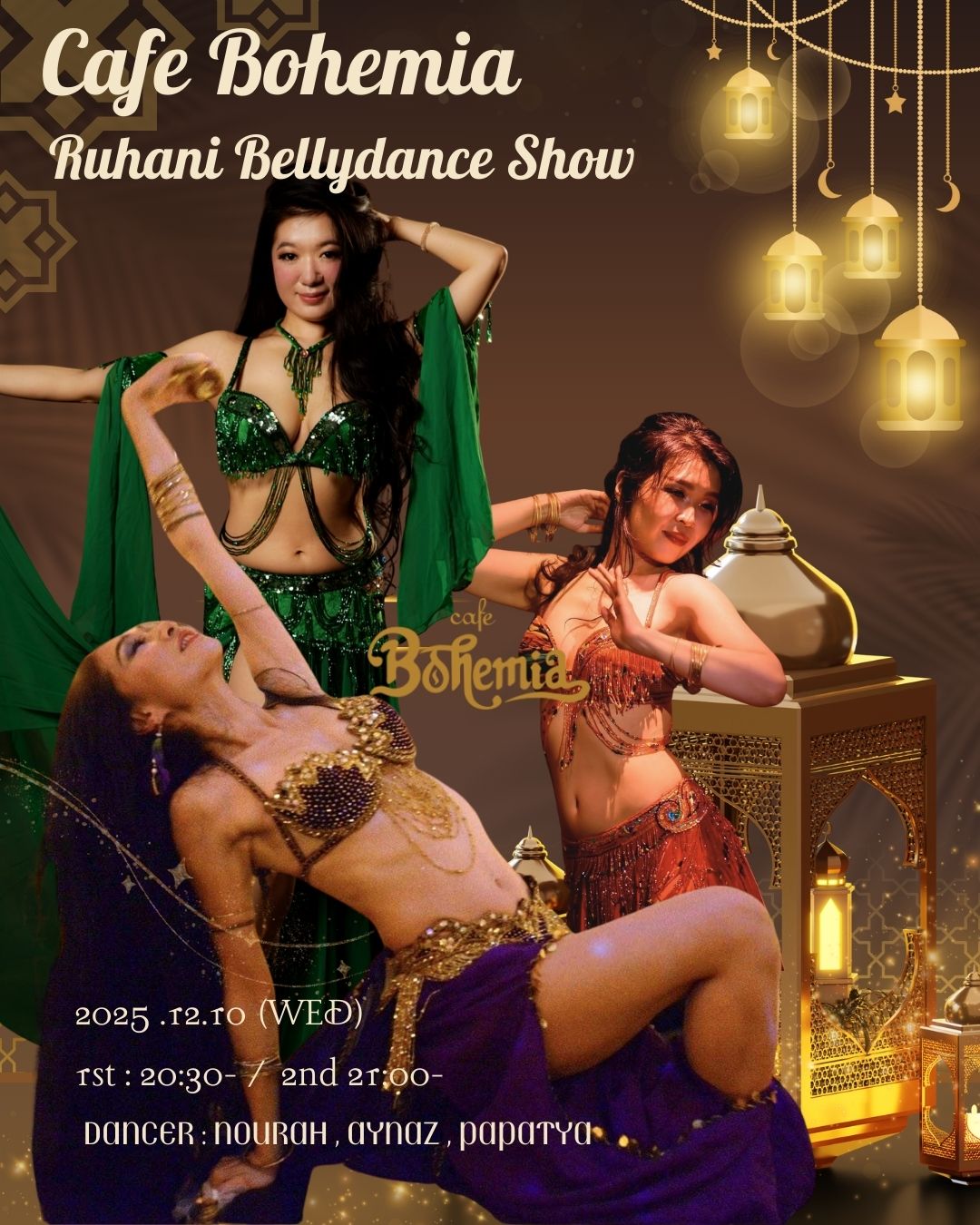 エキゾチックなカフェレストラン渋谷Cafe BOHEMIA にてRuhani BellyDance Arts のダンサーが毎月レギュラーで踊ります。